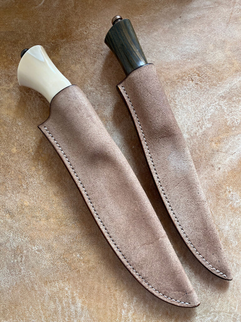 Lederscheiden verarbeite ich aus den verschiedensten Lederarten, passend zum Messer und Einsatzzweck..